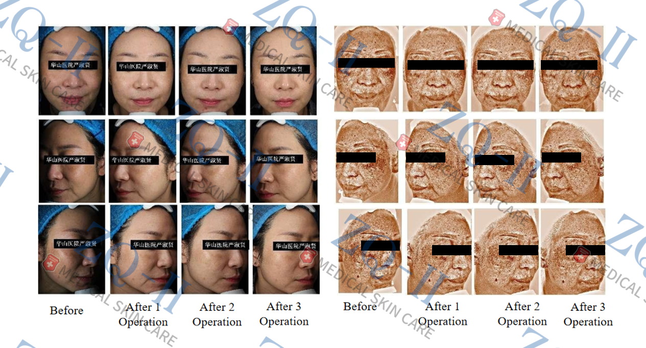 2. การลดลงอย่างมีนัยสำคัญของแพทช์สีเข้มและผิวที่สว่างขึ้นโดยรวม